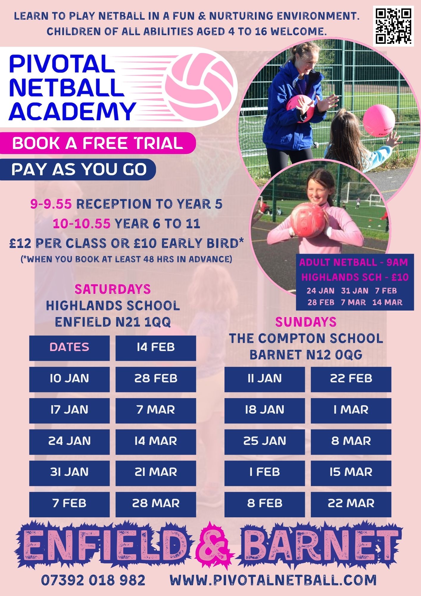 Our coaching classes and holiday camps are available on a ‘pay as you go’ basis and can be booked in advance using our online JoinIn Portal. We offer a free trial for our Saturday coaching classes, so come along to one. We welcome all ages and ability levels, so whether you’re a beginner or want to practice your advanced skills, we cater for your needs.